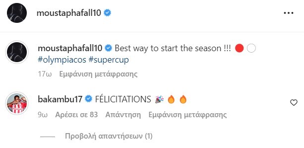 Συγκεκριμένα, ο Κονγκολέζος επιθετικός φρόντισε να το δείξει αυτό λίγη ώρα μετά την κατάκτηση του Super Cup από την ομάδα μπάσκετ της ομάδας του Γιώργου Μπαρτζώκα.
