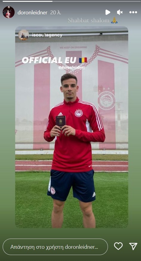 Κάτοχος ρουμάνικου διαβατηρίου έγινε ο Ντορόν Λάιντνερ. Κάτι που σημαίνει ότι ο Ισραηλινός αριστερός μπακ του Ολυμπιακού λογίζεται πλέον ως κοινοτικός. Αυτομάτως, ελευθερώνει μία θέση ξένου στο ρόστερ της ομάδας.