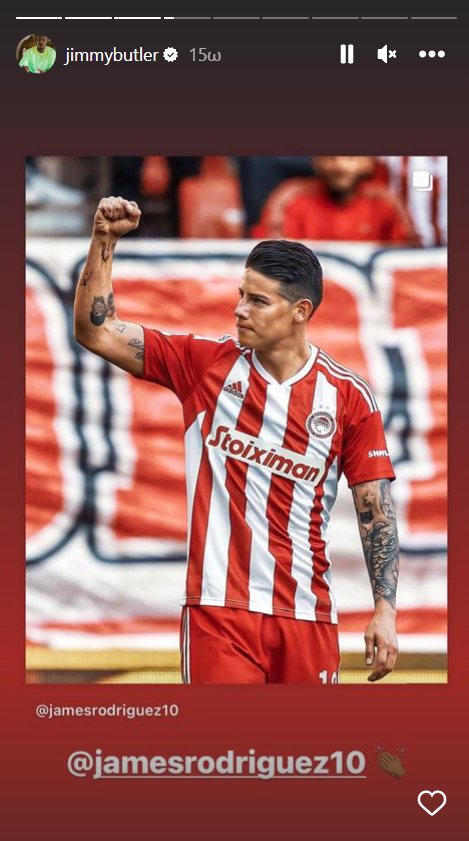 Ο ηγέτης των Μαϊάμι Χιτ κοινοποίησε τη δημοσίευση του Χάμες μετά το γκολ που πέτυχε κόντρα στη Λαμία και συνεχάρη τον Κολομβιανό άσο του Ολυμπιακού.