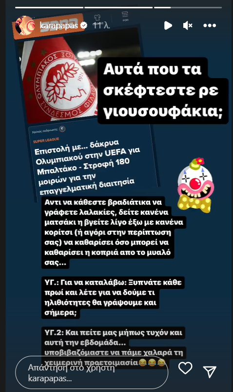 Kαραπαπάς: «Αυτά που τα σκέφτεστε ρε γιουσουφάκια;» (photo)