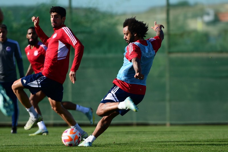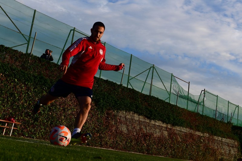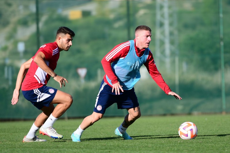 «Δεύτερη διαδοχική μέρα κατά την οποία το πρόγραμμα για τους ποδοσφαιριστές του Ολυμπιακού περιλάμβανε διπλή προπόνηση στην Εστεπόνα.