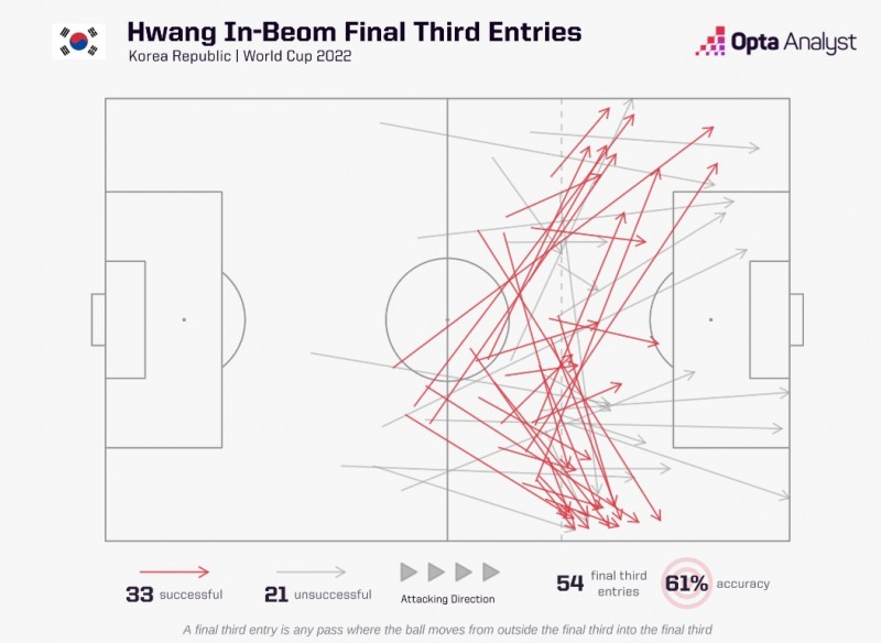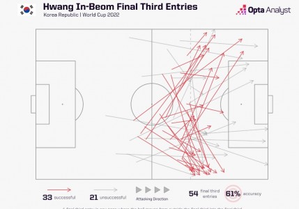 Μπροστά από τον σπουδαίο Ίνμπομ Χουάνγκ βρίσκεται στη σχετική λίστα μόνο ο Πέδρι της Ισπανίας που έχει 44 επιτυχημένες σε 51 απόπειρες έχοντας ποσοστό επιτυχίας ύψους 86%.