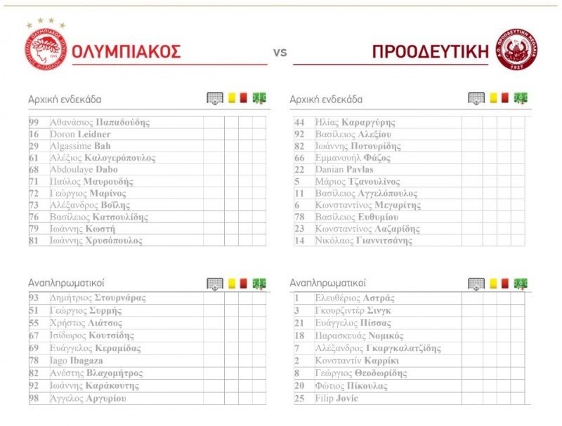 Πάμε να δούμε την ενδεκάδα του Ολυμπιακού Β’, για το ματς με την «Προό». Αναλυτικά οι επιλογές του Γιάννη Οκκά: Παπαδούδης, Λάιντνερ, Μπα, Καλογερόπουλος, Νταμπό, Μαυρουδής, Μαρίνος, Βοΐλης, Κατσουλίδης, Κωστή, Χρυσόπουλος.