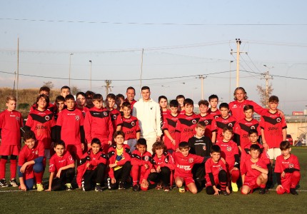 Στη συνέχεια οι μικροί αγωνίστηκαν μεταξύ τους και ο ποδοσφαιριστής του Θρύλου παρακολούθησε το ματς και χειροκρότησε τις προσπάθειες των νεαρών παικτών.