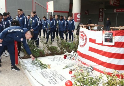 Καθώς η «μαύρη» μέρα της 8ης Φεβρουαρίου πλησιάζει, ο ηγέτης και πρόεδρος του Θρύλου, Βαγγέλης Μαρινάκης, οι ποδοσφαιριστές, ο Μίτσελ και μέλη της διοίκησης απέτισαν φόρο τιμής στα αδέρφια μας που έφυγαν άδικα από τη ζωή για την μεγάλη τους αγάπη, τον Ολυμπιακό.
