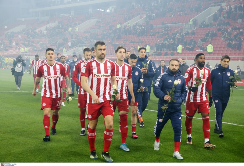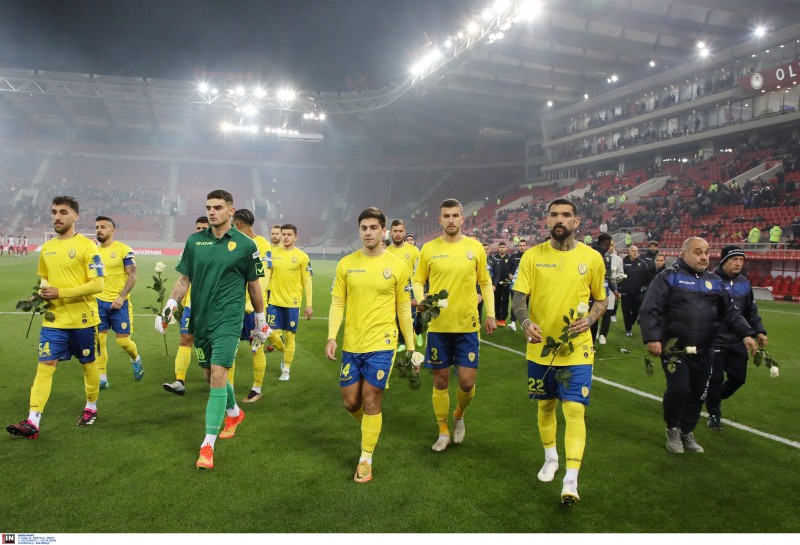 Οι παίκτες του Ολυμπιακού και του Παναιτωλικού τίμησαν τα θύματα της Θύρας 7