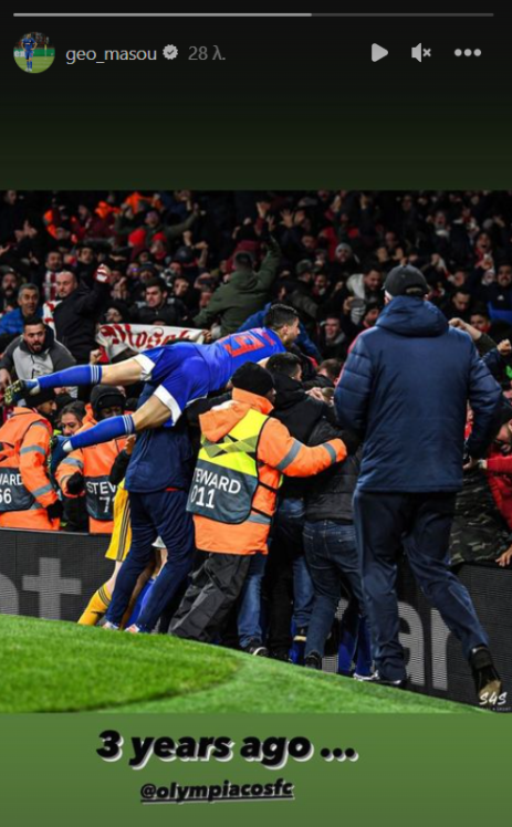 Συγκεκριμένα, ο «Μάσου» πόσταρε μία φωτογραφία από τους πανηγυρισμούς των «ερυθρόλευκων» κατά την επίτευξη του γκολ πρόκρισης, γράφοντας: «Τρία χρόνια πριν...».
