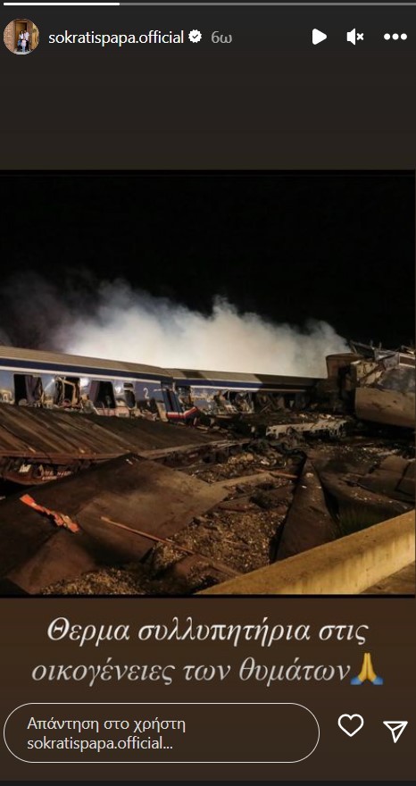 Άπαντες στον Ολυμπιακό, όπως και η συντριπτική πλειοψηφία των Ελλήνων θρηνούν για τον χαμό που προκλήθηκε το βράδυ της Τρίτης στην κοιλάδα των Τεμπών. Ο Σωκράτης Παπασταθόπουλος με την σειρά του έστειλε το δικό του μήνυμα στους οικείους των αδικοχαμένων, γράφοντας: «Θερμά συλλυπητήρια σε όλες τις οικογένειες των θυμάτων».