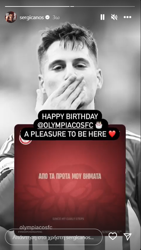 Σήμερα, με αφορμή τα 98α γενέθλια του Ολυμπιακού, έγραψε τα εξής σε ανάρτησή του στα social media: «Χρόνια πολλά Ολυμπιακέ. Ευχαρίστηση μου που βρίσκομαι εδώ».