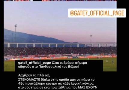 Θύρα 7: «Πάμε ΟΛΟΙ στο Πανθεσσαλικό, να σπρώξουμε την ομάδα στη νίκη!» (photo)