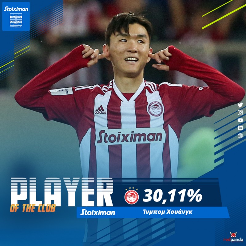 Ο Κορεάτης μέσος των Πειραιωτών συγκέντρωσε ποσοστό άνω του 30%, ξεπερνώντας τον πρώτο σκόρερ της ομάδας φέτος, Σεντρίκ Μπακαμπού (19,02%), και ακολούθως τους Αλέξανδρο Πασχαλάκη (16,72%) και Κώστα Φορτούνη (15,37%). Οι υπόλοιποι «ερυθρόλευκοι» είχαν μονοψήφια ποσοστά.