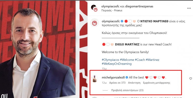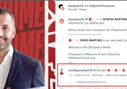 Μάλιστα τις ευχές του στον Ντιέγκο Μαρτίνεθ για τη «θητεία» του στον Ολυμπιακό έστειλε, μέσω των social media, ο Μίτσελ.