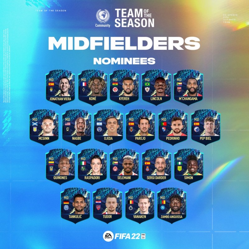 Αναλυτικότερα, τον Απρίλιο του 2022, στο «Community Team of the season» του FIFA 22, υπήρξαν σαράντα υποψήφιοι ποδοσφαιριστές στο χώρο της μεσαία γραμμής, για να συνθέσουν την καλύτερη ενδεκάδα του παιχνιδιού, που έχει έντονο… ρεαλιστικό στοιχείο. Όπως μπορείτε να δείτε και στην παραπάνω φωτογραφία, ο Χόρχε Ντε Φρούτος της Λεβάντε είναι μέσα στις 40 επιλογές, ενώ ο Σέρτζι Ντάρντερ με τα χρώματα της Εσπανιόλ, μια ακόμα επιλογή. Ανάμεσα σε όλους τους παίκτες ωστόσο, υπάρχει και το όνομα του Πεπ Μπιέλ, ο οποίος διακρίθηκε κυρίως λόγω των… θαυμάτων που έκανε με τη φανέλα της Κοπεγχάγης στην Δανία. Για το λόγο αυτό εξάλλου και ο Ολυμπιακός δαπάνησε ένα τεράστιο ποσό για να τον κάνει κάτοικο λιμανιού!