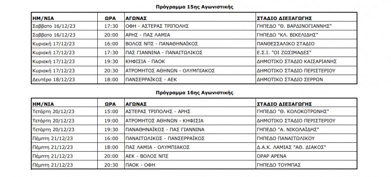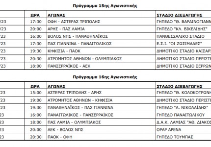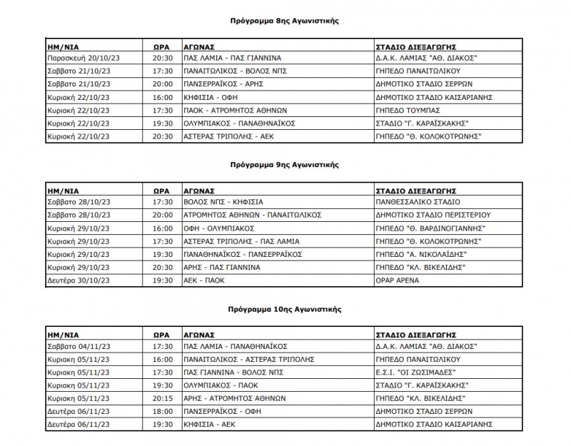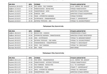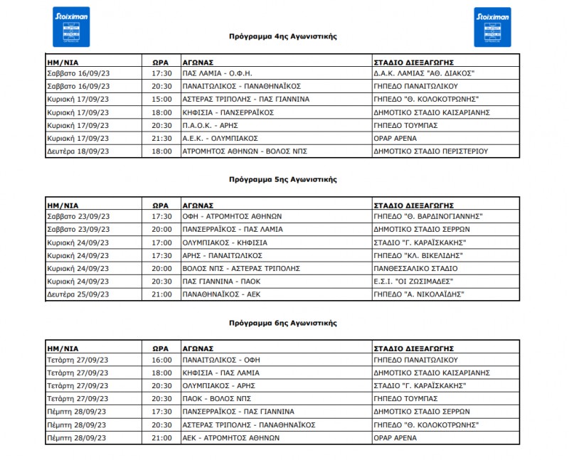 Γνωστό έγινε το πρόγραμμα της Stoiximan Super League από την 4η έως τη 16η αγωνιστική. Στις 17/9 (21:30), ο Ολυμπιακός θα αντιμετωπίσει την ΑΕΚ στην «Οπαπαρίνα», για την 4η αγωνιστική του πρωταθλήματος, ενώ στις 22/10 (19:30), θα υποδεχθεί τον Παναθηναϊκό στο «Γ. Καραϊσκάκης», για την 8η «στροφή».