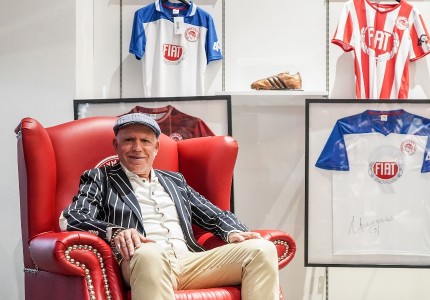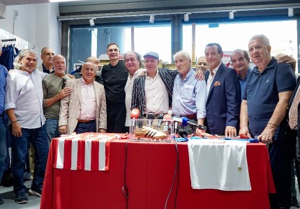 Η εκδήλωση στη μπουτίκ του Ναού ήταν για την επίσημη παρουσίαση των επετειακών εμφανίσεων του βετεράνου «ερυθρόλευκου» επιθετικού, με αφορμή τη συμπλήρωση 40 ετών από τη σπουδαία του διάκριση, το 1983.
