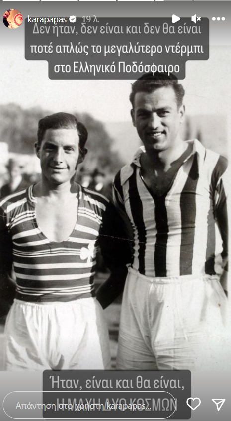 Με μία εικόνα δυνατή, πλήρως… κατατοπιστική, για το τι εστί Ολυμπιακός και τι εστία Παναθηναϊκός, ο Κώστας Καραπαπάς συνόδευσε την τοποθέτησή του, για το αποψινό ντέρμπι «αιωνίων»…