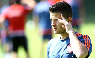 Σε τρελά... κέφια ο ποδοσφαιριστής του Ολυμπιακού...