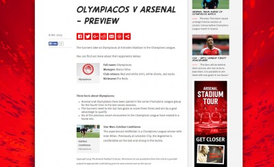 Στην ανάλυση στο site της Άρσεναλ για τον Ολυμπιακό γίνεται ειδική αναφορά στον Αργεντινό μέσο.