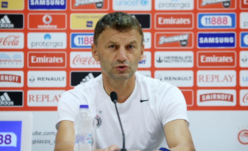 «Είμαι πολύ ευχαριστημένος με την ομάδα μου έτσι όπως έπαιξε στο Καραϊσκάκη. Κάναμε ένα πάρα πολύ καλό παιχνίδι, δείξαμε ένα καλό πρόσωπο, ήμασταν πολύ επιθετικοί, είχαμε κυριαρχία και κάναμε από το πρώτο έως το τελευταίο λεπτό μπορούσαμε και να κερδίσουμε. Μου άρεσε πάρα πολύ η στάση που είχαν οι παίκτες σε όλο το 90λεπτο», δήλωσε αρχικά.