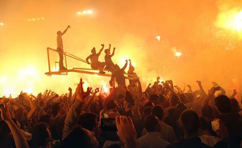 Διότι αυτό που ακολούθησε αργότερα από τους οπαδούς του Ερυθρού Αστέρα ήταν απίστευτο. Φωνή, παλμός και συνθήματα για την κούπα που κατέκτησαν οι "ερυθρόλευκοι" κόντρα στον "αιώνιο" αντίπαλό τους και μάλιστα μέσα στην έδρα του. Κι αυτό ήταν που έδωσε ακόμα μεγαλύτερη ένταση στους πανηγυρισμούς των Delije.