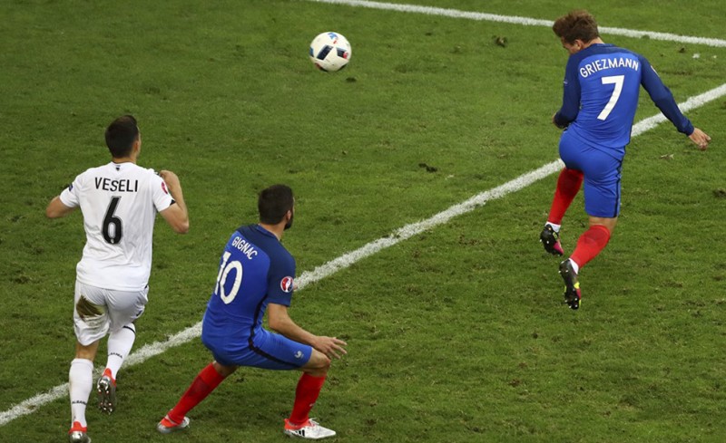 Η σέντρα του Ραμί από τα δεξιά, ο αφύλακτος Γκριεζμάν στο κέντρο της περιοχής και η κεφαλιά του στη δεξιά γωνία του Μπερίσα που δεν μπόρεσε να αντιδράσει. Κι έτσι "λυτρώθηκε" η Γαλλία με αυτό το γκολ, για να έχει και συνέχεια το σκηνικό στις καθυστερήσεις.
