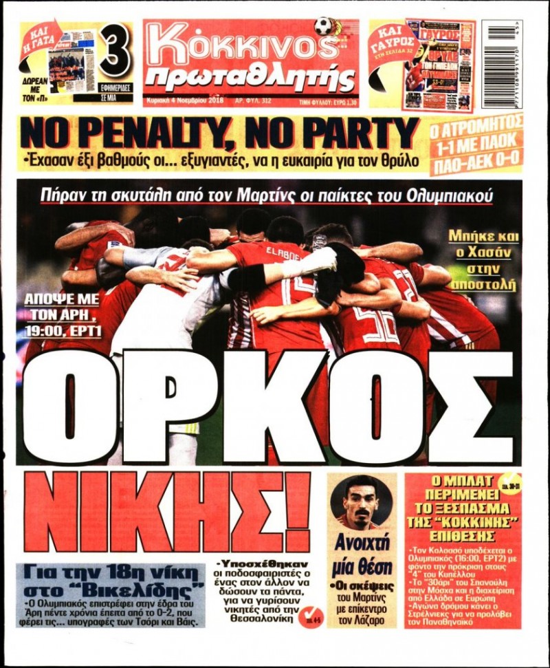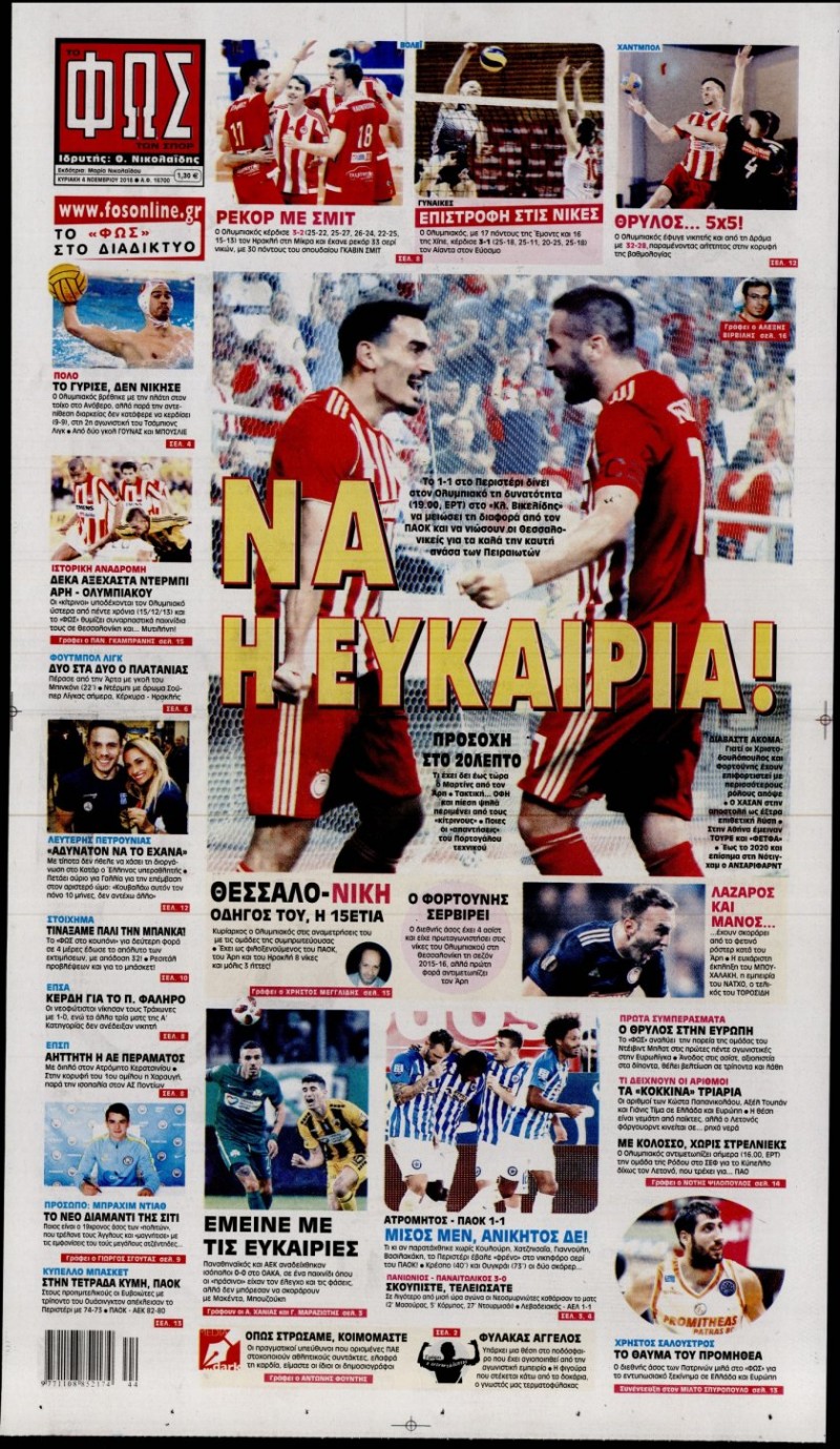 Δείτε πώς αποτυπώνεται η επικαιρότητα σήμερα, Κυριακή 4 Νοεμβρίου 2018, στις εφημερίδες «ΦΩΣ» και «Κόκκινος Πρωταθλητής»...