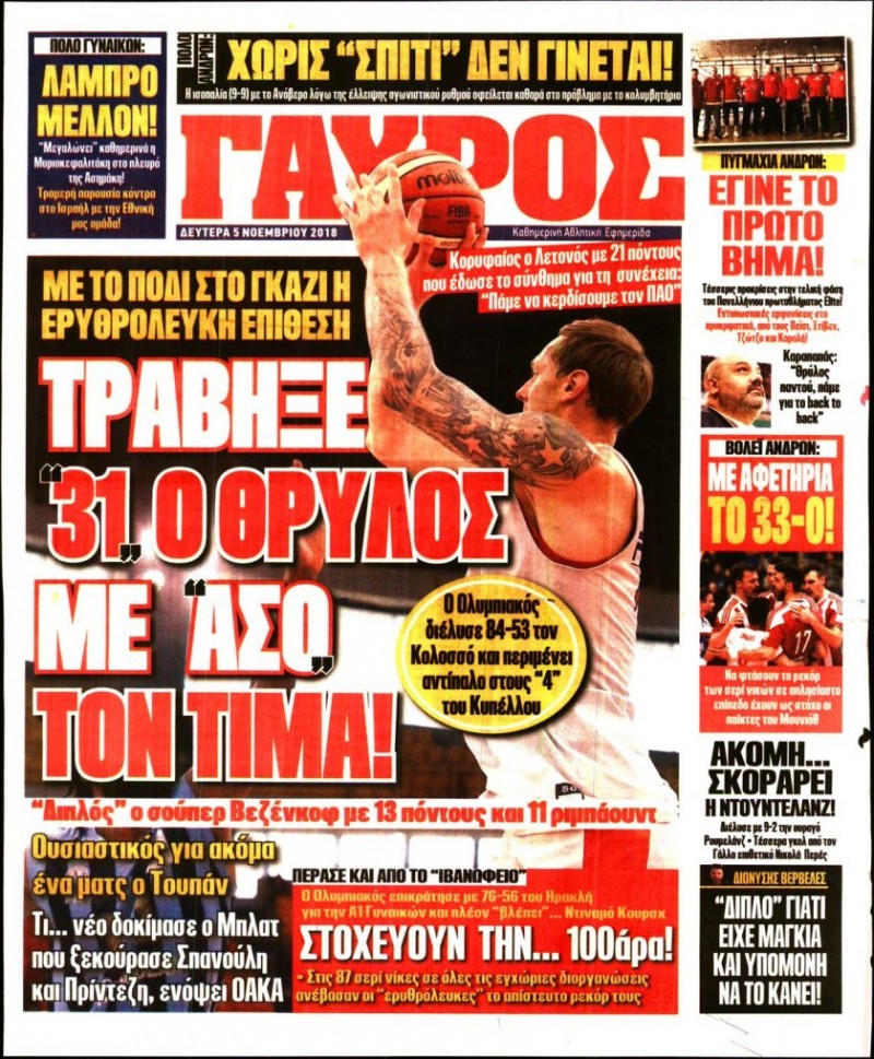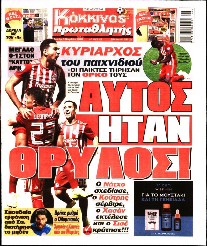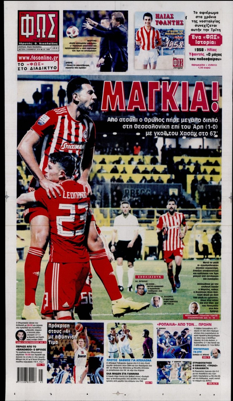 Δείτε πώς αποτυπώνεται η επικαιρότητα σήμερα, Δευτέρα 5 Νοεμβρίου 2018, στις εφημερίδες «ΦΩΣ» και «Κόκκινος Πρωταθλητής»...