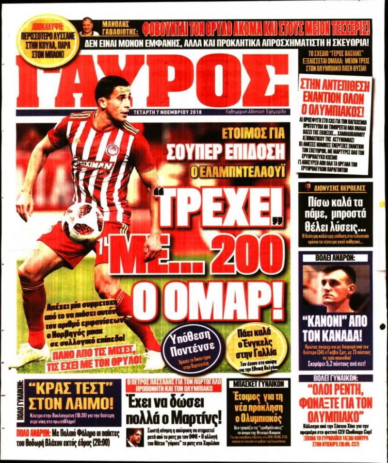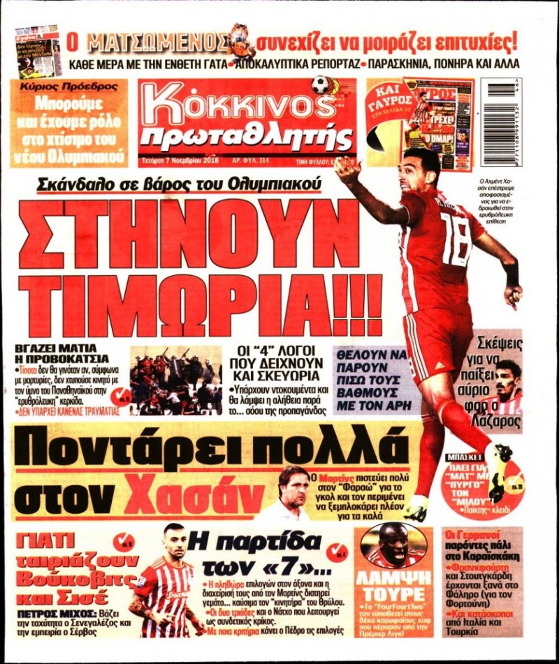 Δείτε πώς αποτυπώνεται η επικαιρότητα σήμερα, Τετάρτη 7 Νοεμβρίου 2018, στις εφημερίδες «ΦΩΣ» και «Κόκκινος Πρωταθλητής»...