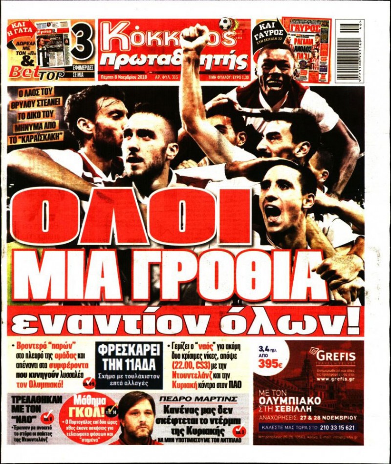 Τα «ερυθρόλευκα» πρωτοσέλιδα