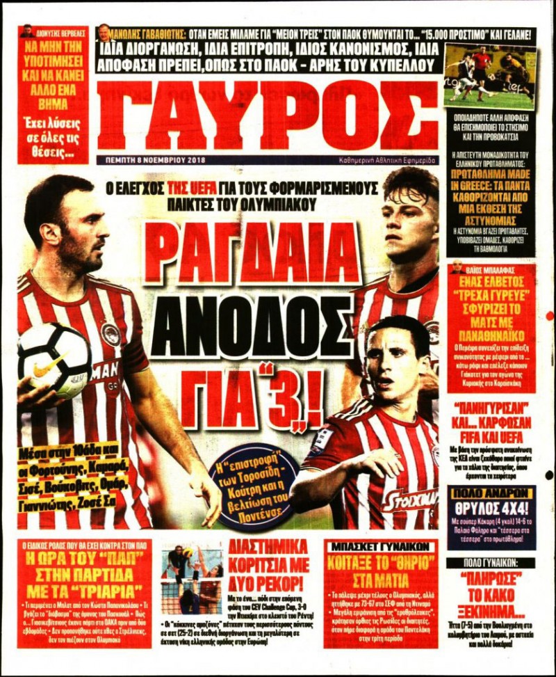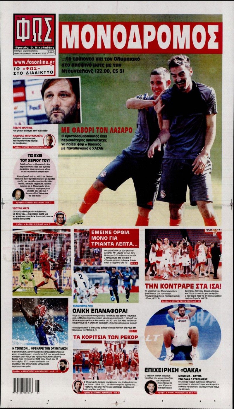 Δείτε πώς αποτυπώνεται η επικαιρότητα σήμερα, Πέμπτη 8 Νοεμβρίου 2018, στις εφημερίδες «ΦΩΣ» και «Κόκκινος Πρωταθλητής»...