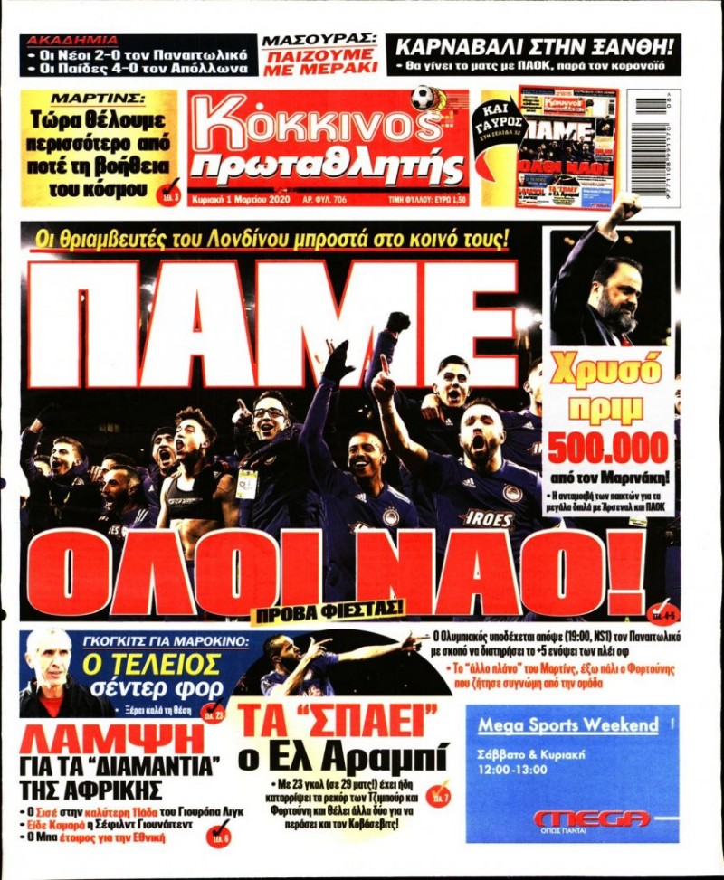 Το πρωτοσέλιδο του «Κόκκινου Πρωταθλητή», αλλά και του «ΓΑΥΡΟΥ», μπορείτε να δείτε μέσω του σάιτ μας. Καθημερινά εδώ, πώς κυκλοφορεί η εφημερίδα που καλύπτει όλη την «ερυθρόλευκη» δραστηριότητα.