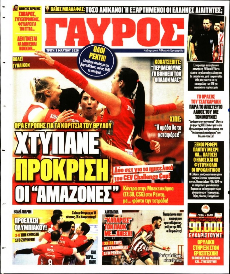 Το πρωτοσέλιδο του «Κόκκινου Πρωταθλητή», αλλά και του «ΓΑΥΡΟΥ», μπορείτε να δείτε μέσω του σάιτ μας. Καθημερινά εδώ, πώς κυκλοφορεί η εφημερίδα που καλύπτει όλη την «ερυθρόλευκη» δραστηριότητα.