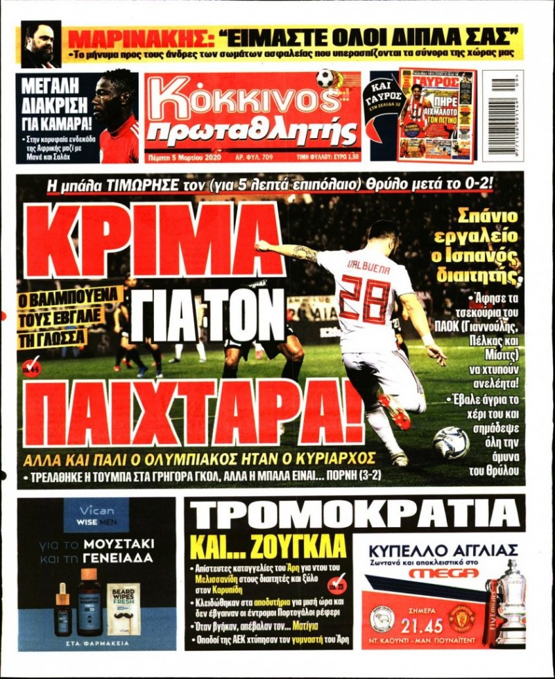 Δείτε τα πρωτοσέλιδα της 5ης Μαρτίου 2020...