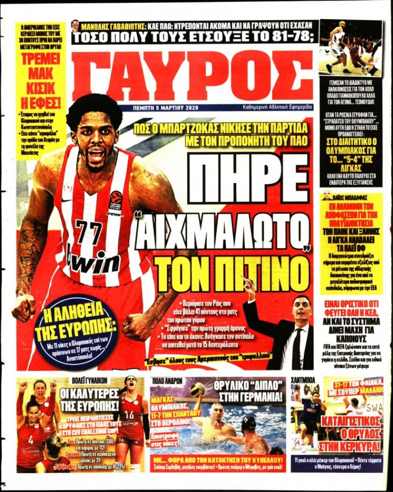 Το πρωτοσέλιδο του «Κόκκινου Πρωταθλητή», αλλά και του «ΓΑΥΡΟΥ», μπορείτε να δείτε μέσω του σάιτ μας. Καθημερινά εδώ, πώς κυκλοφορεί η εφημερίδα που καλύπτει όλη την «ερυθρόλευκη» δραστηριότητα.