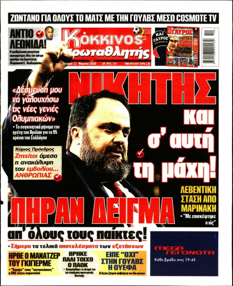 Το πρωτοσέλιδο του «Κόκκινου Πρωταθλητή»