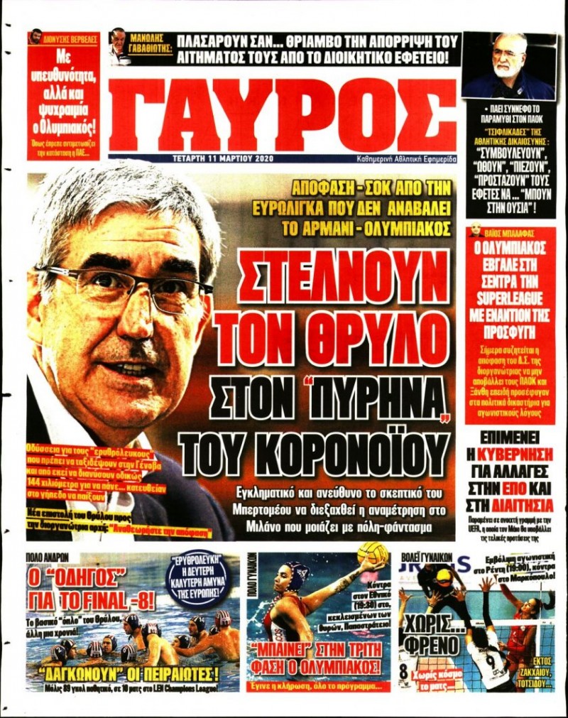 Δείτε τα πρωτοσέλιδα της 11ης Μαρτίου 2020...