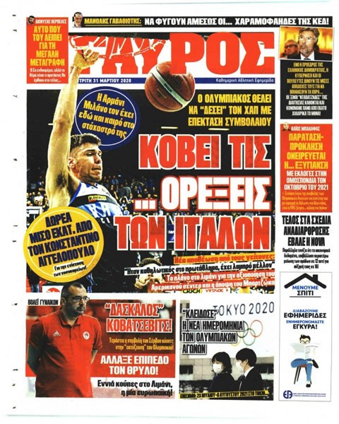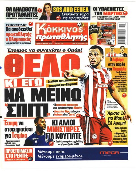 Δείτε τα πρωτοσέλιδα της 31ης Μαρτίου 2020...