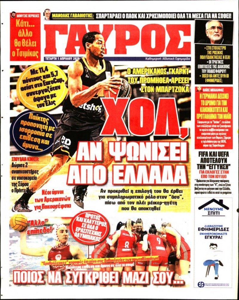 Δείτε τα πρωτοσέλιδα της 1ης Απριλίου 2020...