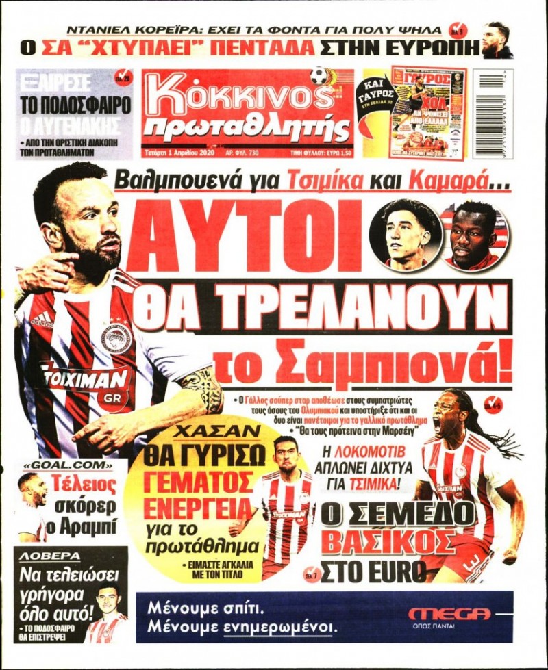 Το πρωτοσέλιδο του «Κόκκινου Πρωταθλητή», αλλά και του «ΓΑΥΡΟΥ», μπορείτε να δείτε μέσω του σάιτ μας. Καθημερινά εδώ, πώς κυκλοφορεί η εφημερίδα που καλύπτει όλη την «ερυθρόλευκη» δραστηριότητα.