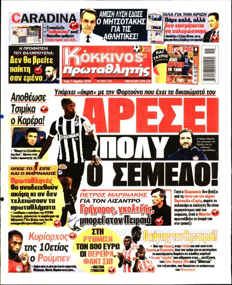 Το πρωτοσέλιδο του «Κόκκινου Πρωταθλητή»