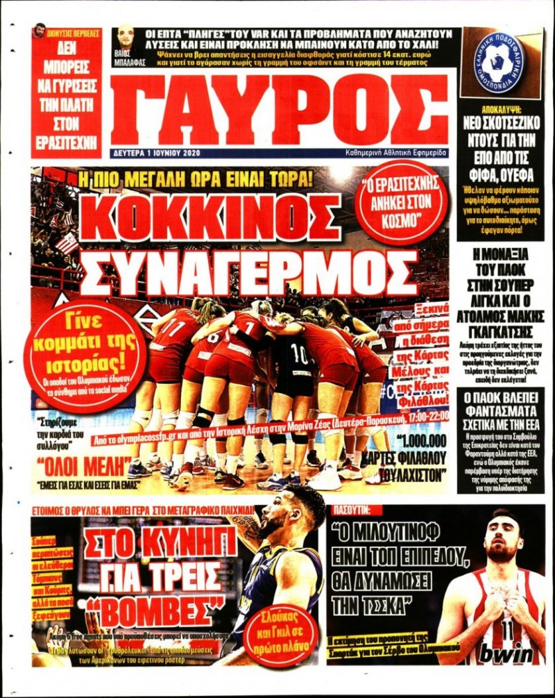 Το πρωτοσέλιδο του «Κόκκινου Πρωταθλητή», αλλά και του «ΓΑΥΡΟΥ», μπορείτε να δείτε μέσω του σάιτ μας. Καθημερινά εδώ, πώς κυκλοφορεί η εφημερίδα που καλύπτει όλη την «ερυθρόλευκη» δραστηριότητα.