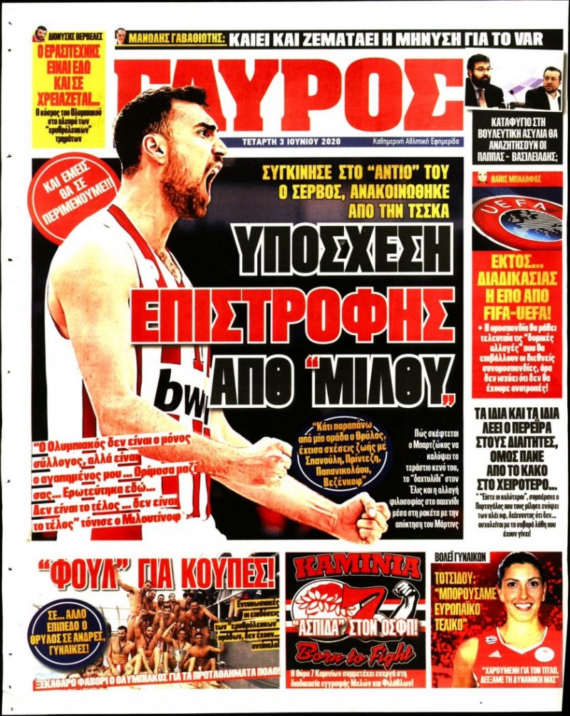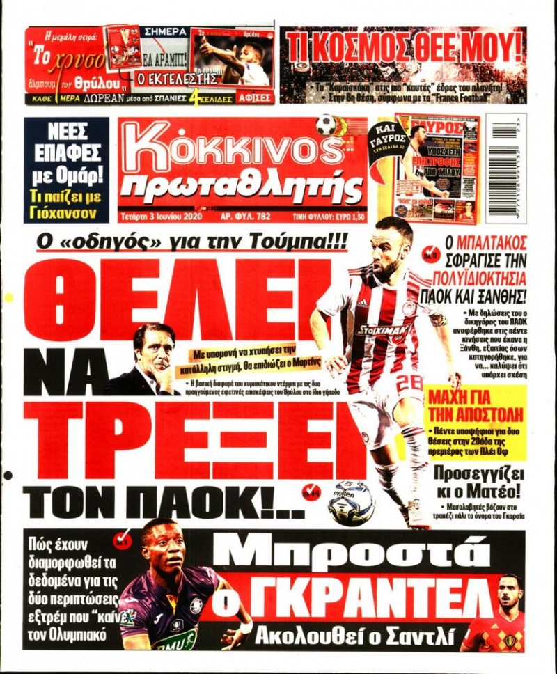 Το πρωτοσέλιδο του «Κόκκινου Πρωταθλητή», αλλά και του «ΓΑΥΡΟΥ», μπορείτε να δείτε μέσω του σάιτ μας. Καθημερινά εδώ, πώς κυκλοφορεί η εφημερίδα που καλύπτει όλη την «ερυθρόλευκη» δραστηριότητα.