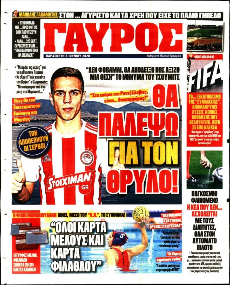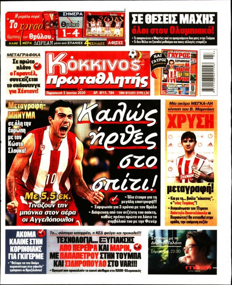 Το πρωτοσέλιδο του «Κόκκινου Πρωταθλητή», αλλά και του «ΓΑΥΡΟΥ», μπορείτε να δείτε μέσω του σάιτ μας. Καθημερινά εδώ, πώς κυκλοφορεί η εφημερίδα που καλύπτει όλη την «ερυθρόλευκη» δραστηριότητα.