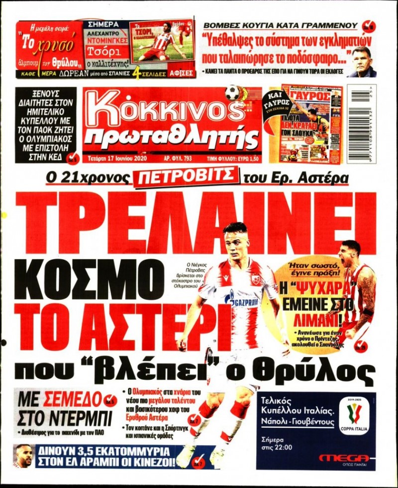 Το πρωτοσέλιδο του «Κόκκινου Πρωταθλητή», αλλά και του «ΓΑΥΡΟΥ», μπορείτε να δείτε μέσω του σάιτ μας. Καθημερινά εδώ, πώς κυκλοφορεί η εφημερίδα που καλύπτει όλη την «ερυθρόλευκη» δραστηριότητα.
