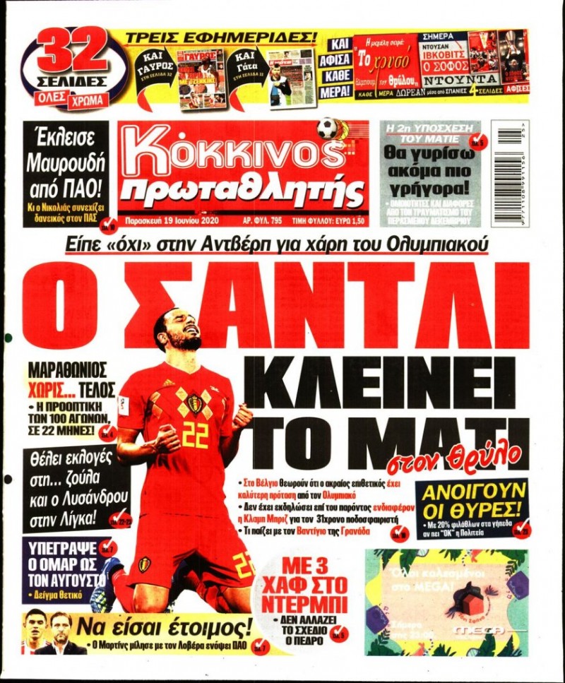 Το πρωτοσέλιδο του «Κόκκινου Πρωταθλητή», αλλά και του «ΓΑΥΡΟΥ», μπορείτε να δείτε μέσω του σάιτ μας. Καθημερινά εδώ, πώς κυκλοφορεί η εφημερίδα που καλύπτει όλη την «ερυθρόλευκη» δραστηριότητα.