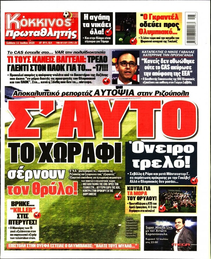 Το πρωτοσέλιδο του «Κόκκινου Πρωταθλητή», αλλά και του «ΓΑΥΡΟΥ», μπορείτε να δείτε μέσω του σάιτ μας. Καθημερινά εδώ, πώς κυκλοφορεί η εφημερίδα που καλύπτει όλη την «ερυθρόλευκη» δραστηριότητα.