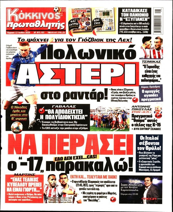 Το πρωτοσέλιδο του «Κόκκινου Πρωταθλητή», αλλά και του «ΓΑΥΡΟΥ», μπορείτε να δείτε μέσω του σάιτ μας. Καθημερινά εδώ, πώς κυκλοφορεί η εφημερίδα που καλύπτει όλη την «ερυθρόλευκη» δραστηριότητα.