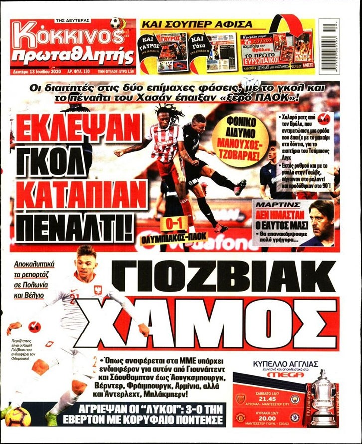 Το πρωτοσέλιδο του «Κόκκινου Πρωταθλητή», αλλά και του «ΓΑΥΡΟΥ», μπορείτε να δείτε μέσω του σάιτ μας. Καθημερινά εδώ, πώς κυκλοφορεί η εφημερίδα που καλύπτει όλη την «ερυθρόλευκη» δραστηριότητα.