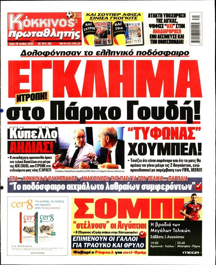 Το πρωτοσέλιδο του Κόκκινου Πρωταθλητή (28/7)