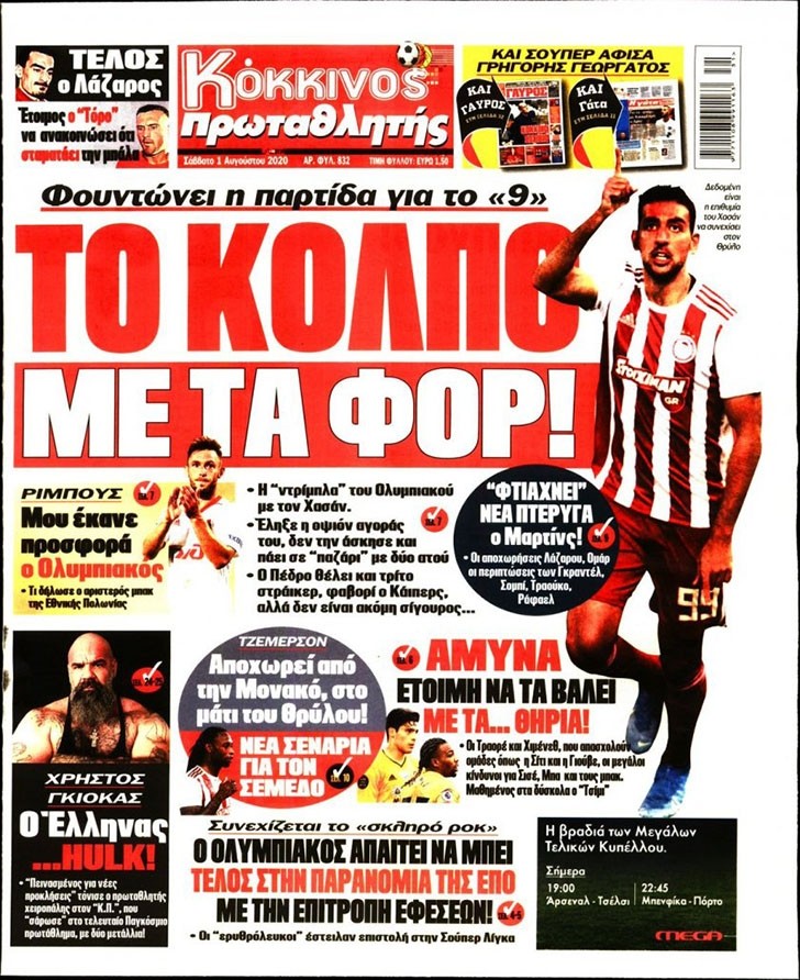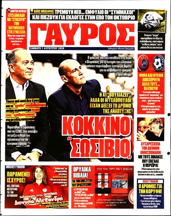 Το πρωτοσέλιδο του «Κόκκινου Πρωταθλητή», αλλά και του «ΓΑΥΡΟΥ», μπορείτε να δείτε μέσω του σάιτ μας. Καθημερινά εδώ, πώς κυκλοφορεί η εφημερίδα που καλύπτει όλη την «ερυθρόλευκη» δραστηριότητα.